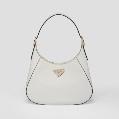 A bold and refined silhouette characterizes this leather shoulder bag with fine details. The geometric construction contrasts with soft lines to create a modern and elegant yet sporty bag, an expression of the hybrid concept and part of the Prthtada's aesthetic code.