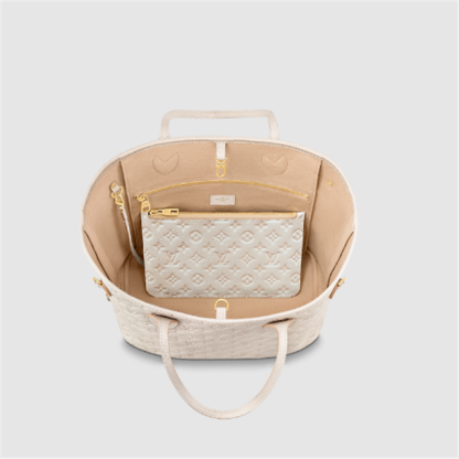 The Summer Stardust animation brings a shimmering effect to the embossed Monogram Empreinte leather of this Neverfull MM carryall. Roomy but lightweight, its side laces cinch for a sleeker allure or loosen for a more casual feel. The leather handles slip comfortably over the shoulder or arm.