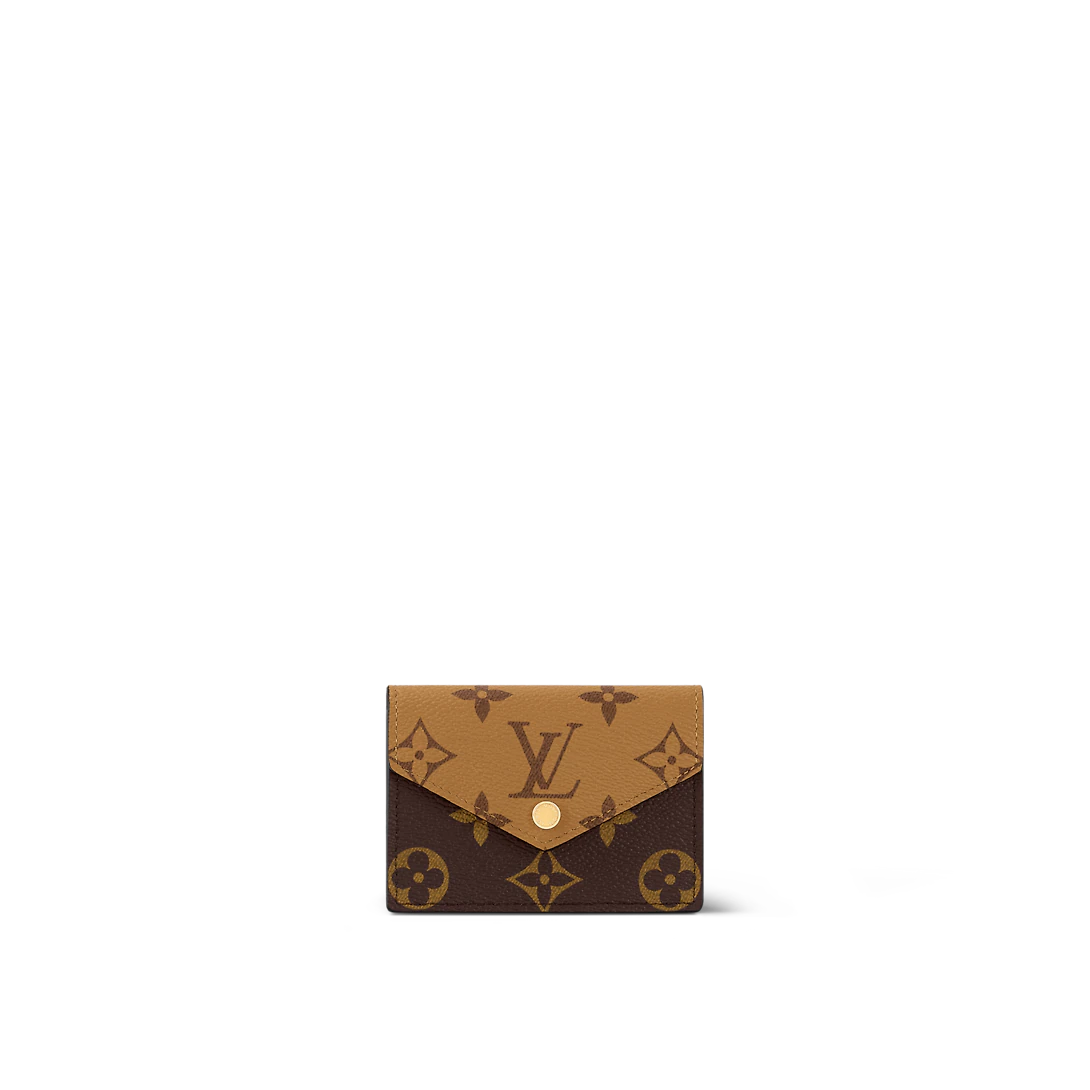 Handsome and secure, the Card Holder is made from Monogram canvas with Monogram Reverse canvas on the flap. The interior is divided into five gussets in which to put cards and other small essentials. It closes with a gold-color press-stud.