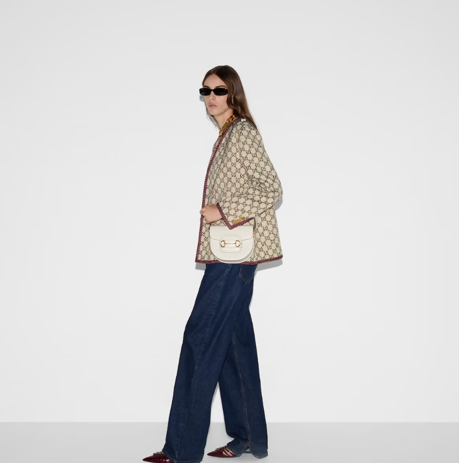 The Gucci 1955 Horsebit evolves as part of the latest collection with the addition of a mini shoulder bag variation, offering greater versatility and functionality. Presented in signature white leather with a flap closure, an adjustable shoulder strap completes the design.