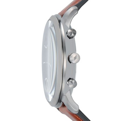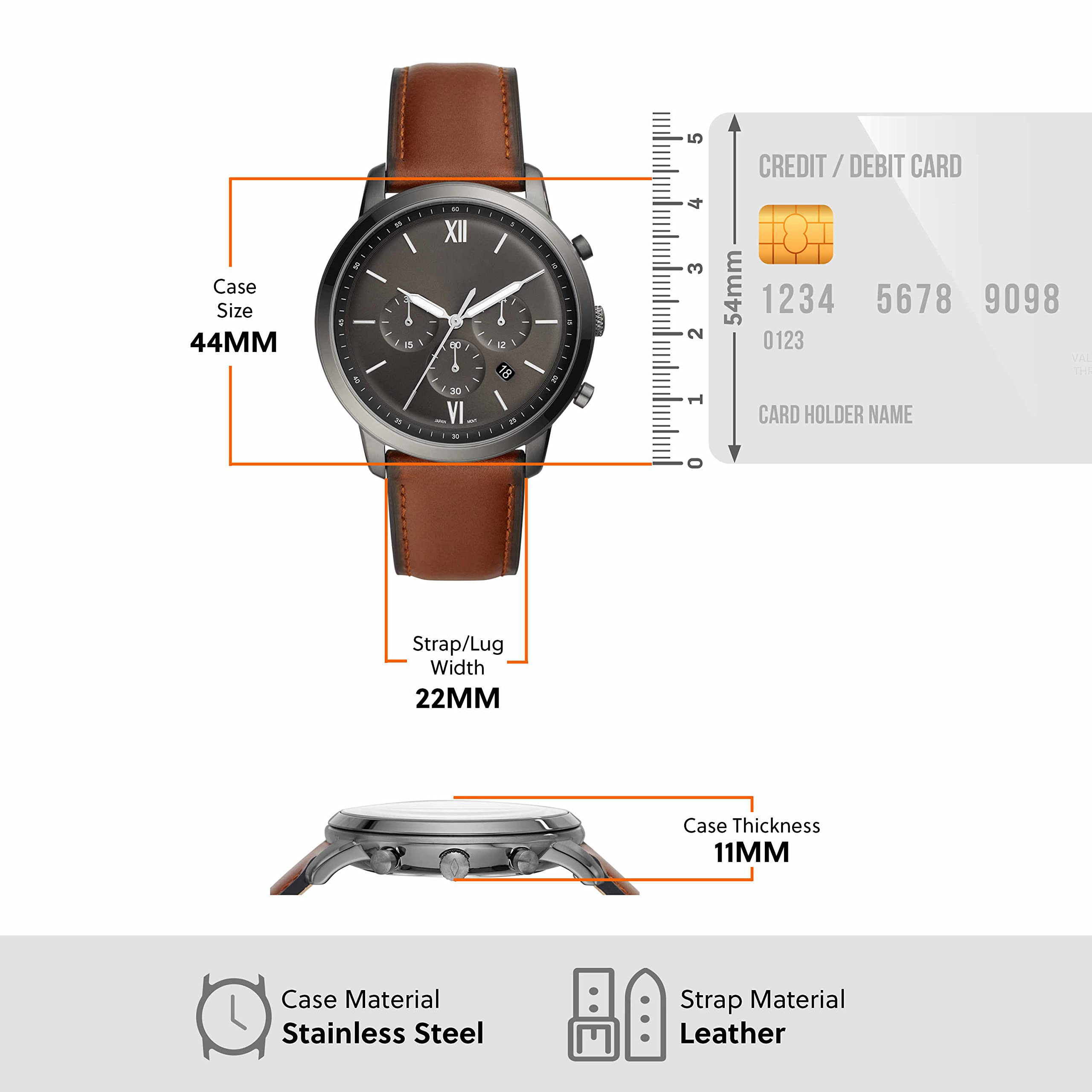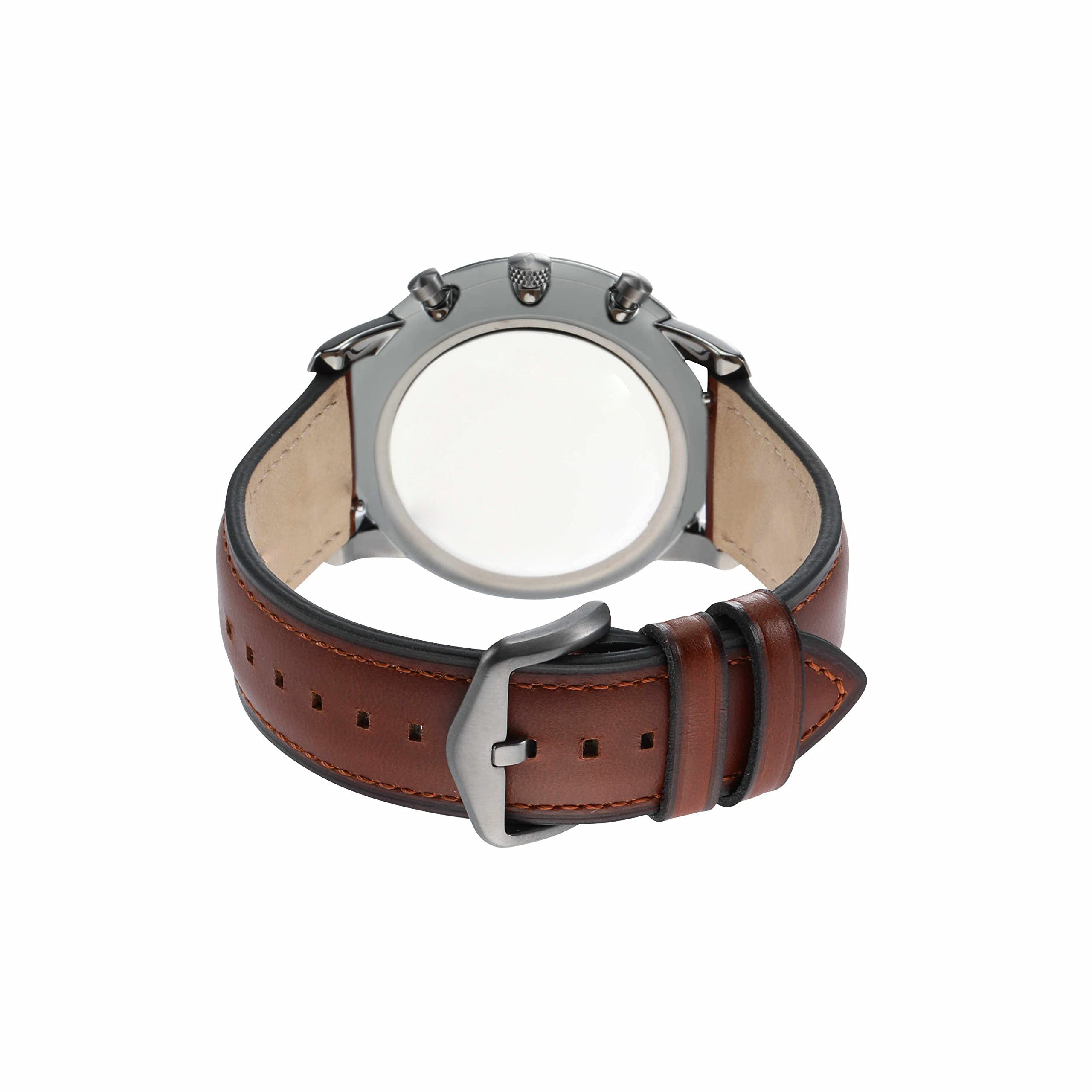 • Smoke stainless steel case with gray dial; genuine brown leather band with adjustable buckle closure; interchangeable with all 22mm Fossil watch straps