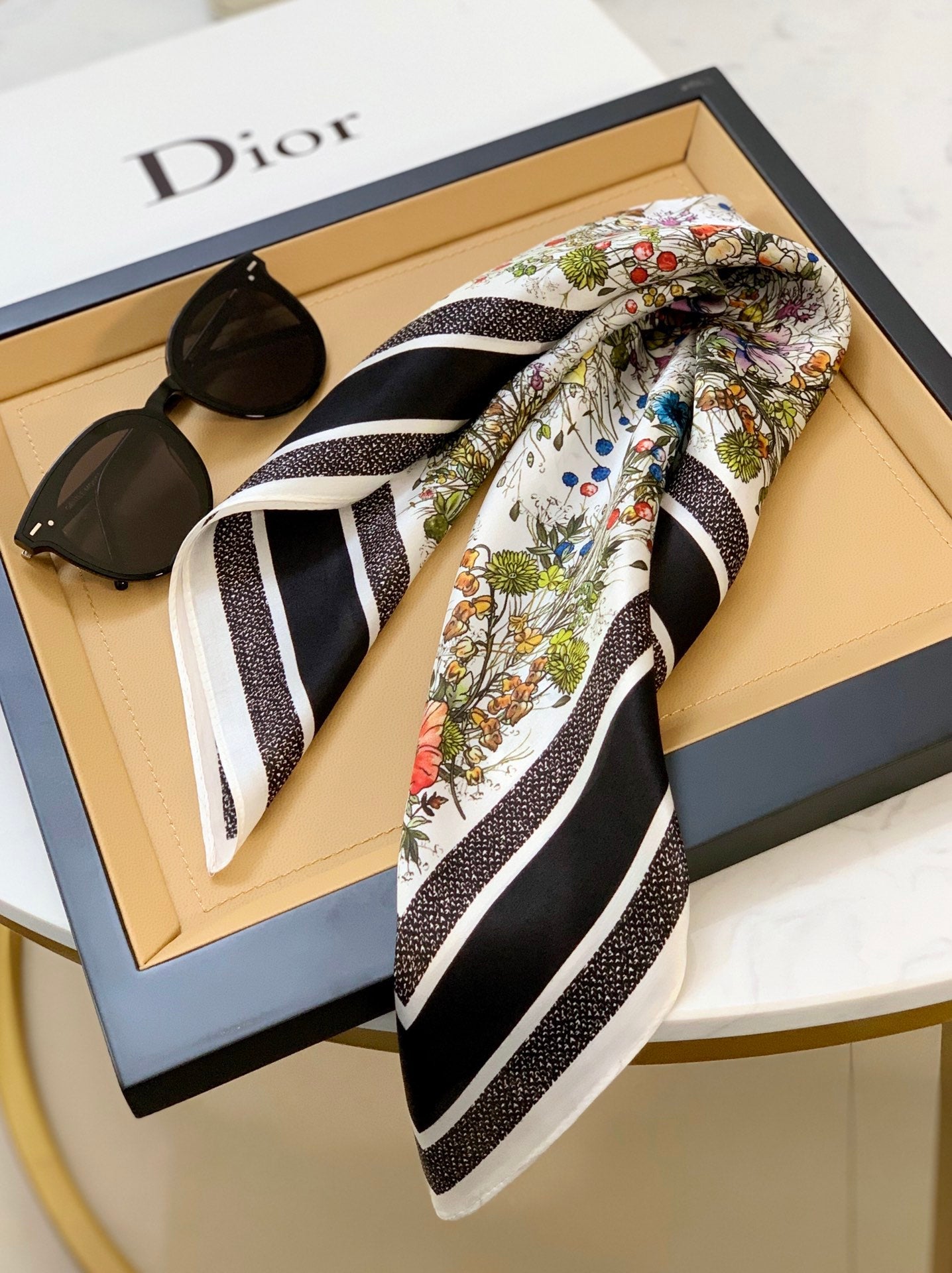CD square pattern silk scarf