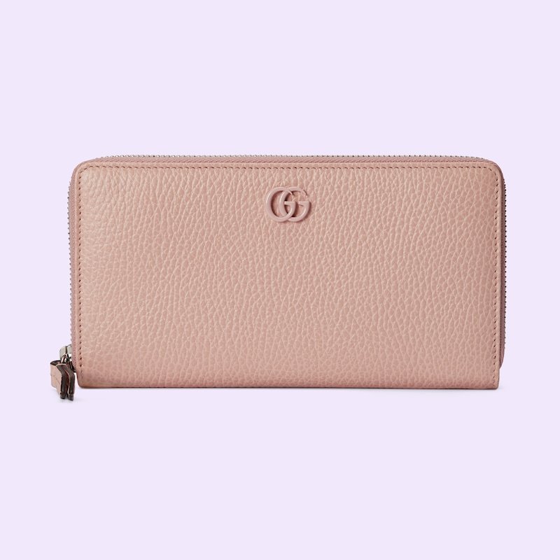 The GthtG Marmont wallet is introduced in a romantic light pink leather for the latest Guthtcci collection. First appearing as a belt buckle in the '70s, the Double G hardware is reimagined in matching resin. The accessory's tone-on-tone shades add a contemporary feel to the emblematic design.
