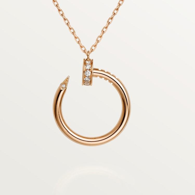 Juste un Clou necklace, 18K rose gold (750/1000), set with 14 brilliant-cut diamonds totaling 0.12 carats. Width: 2.2 mm. Inner diameter: 14.2 mm. Adjustable chain length: 42-46 cm.